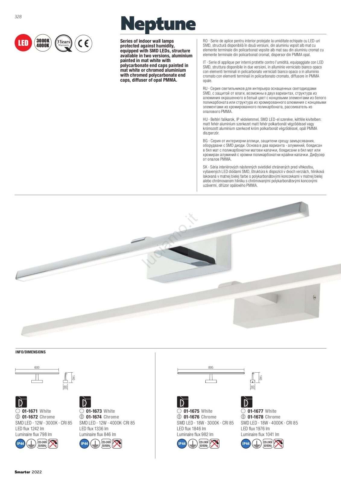 • Redo 01-1674 - Illuminazione a LED per specchio da bagno NEPTUNE LED/12W/230V 60 cm IP44 cromo lucido