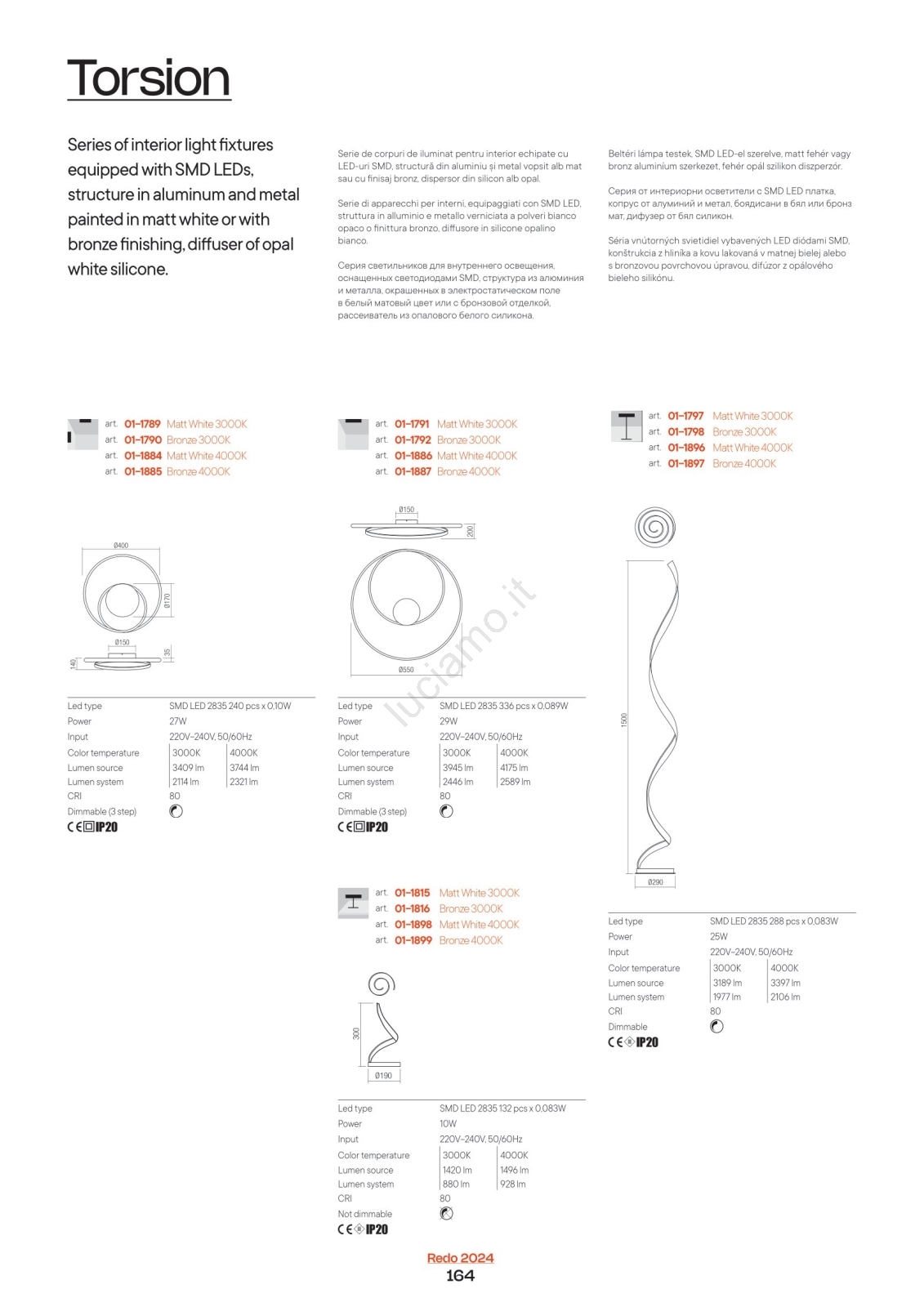 • Redo 01-1789 - Applique a parete dimmerabile a LED TORSION LED/27W/230V Ø 40 cm bianco