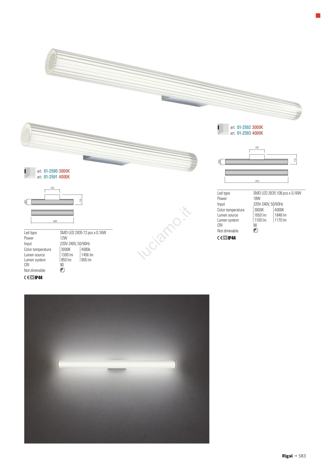 Redo 01-2591 - Illuminazione LED per specchio da bagno RIGAL LED/12W/230V 4000K 90 cm CRI 90 IP44 cromo lucido/bianco