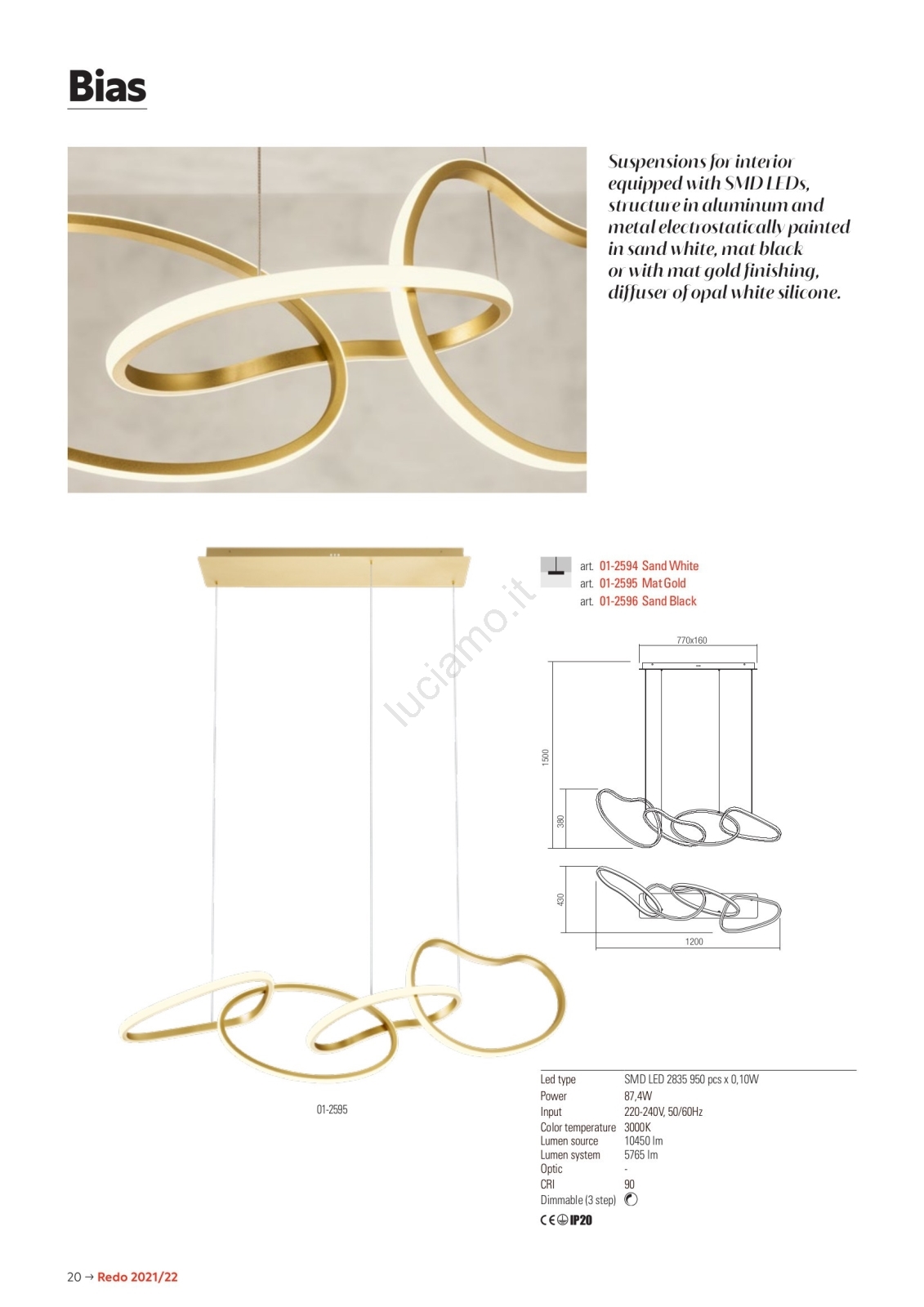 • Redo 01-2594 - Lampadario dimmerabile a cavo BIAS LED/87,4W/230V 3000K CRI 90 bianco
