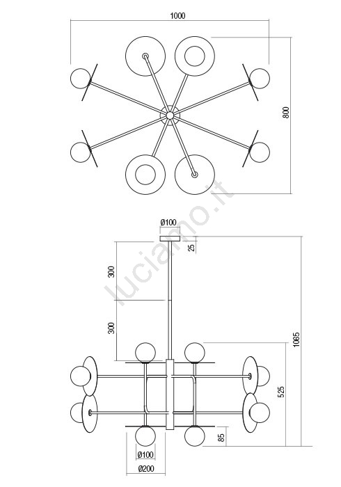 Redo 01-2735 - Lampadario a stelo PLATO 8xG9/10W/230V dorato