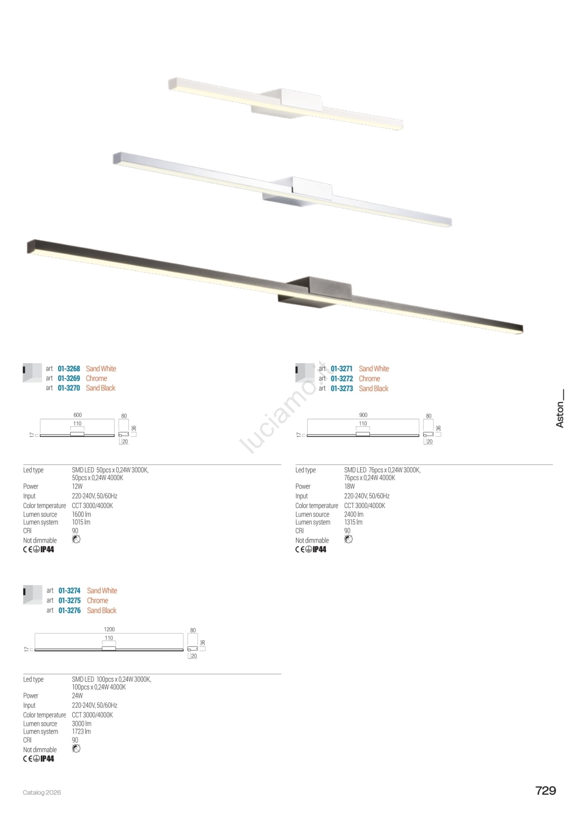 • Redo 01-3271 - Illuminazione LED per specchio da bagno ASTON, LED 18W/230V, 3000/4000K, 90 cm, CRI 90, IP44, bianco