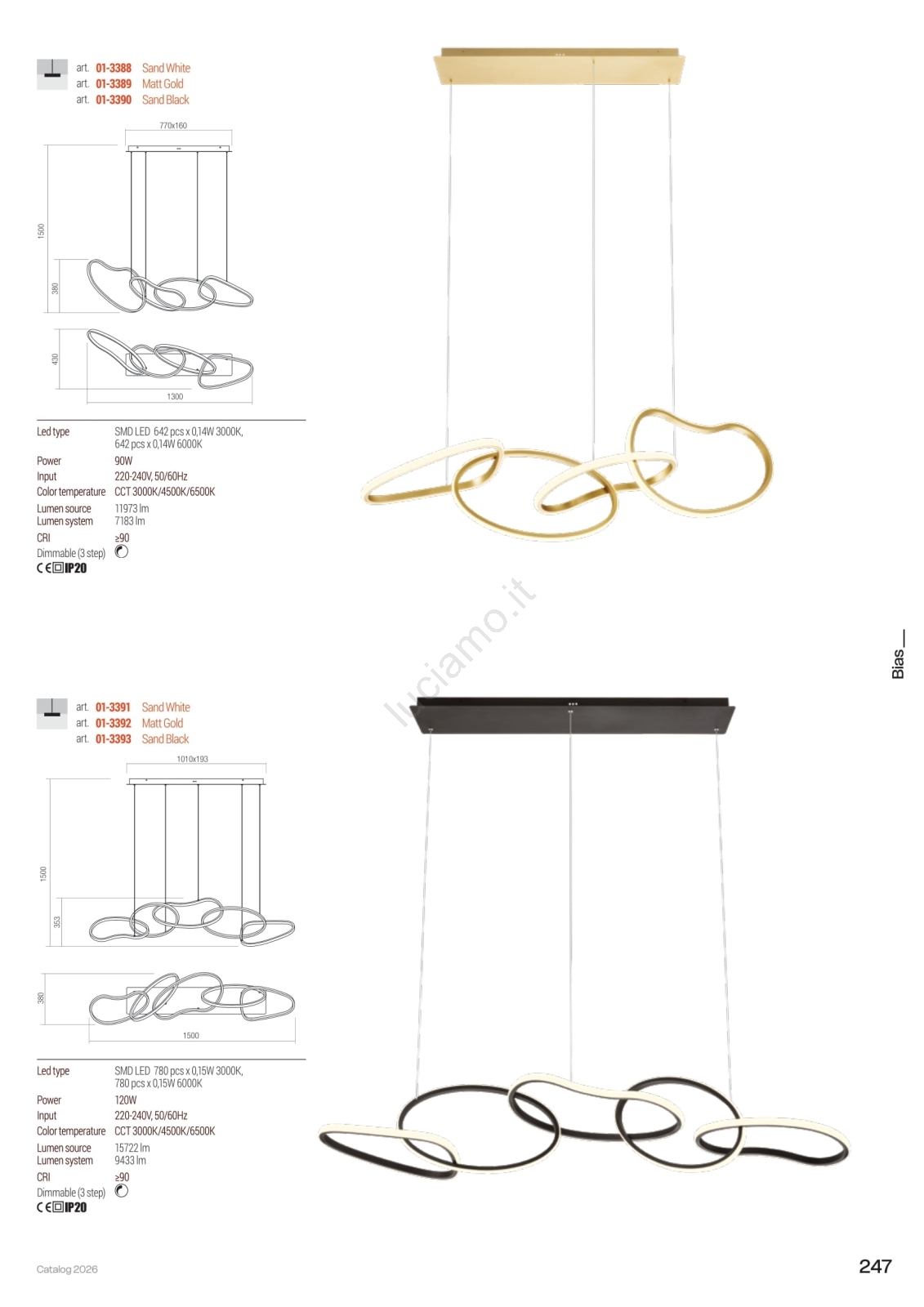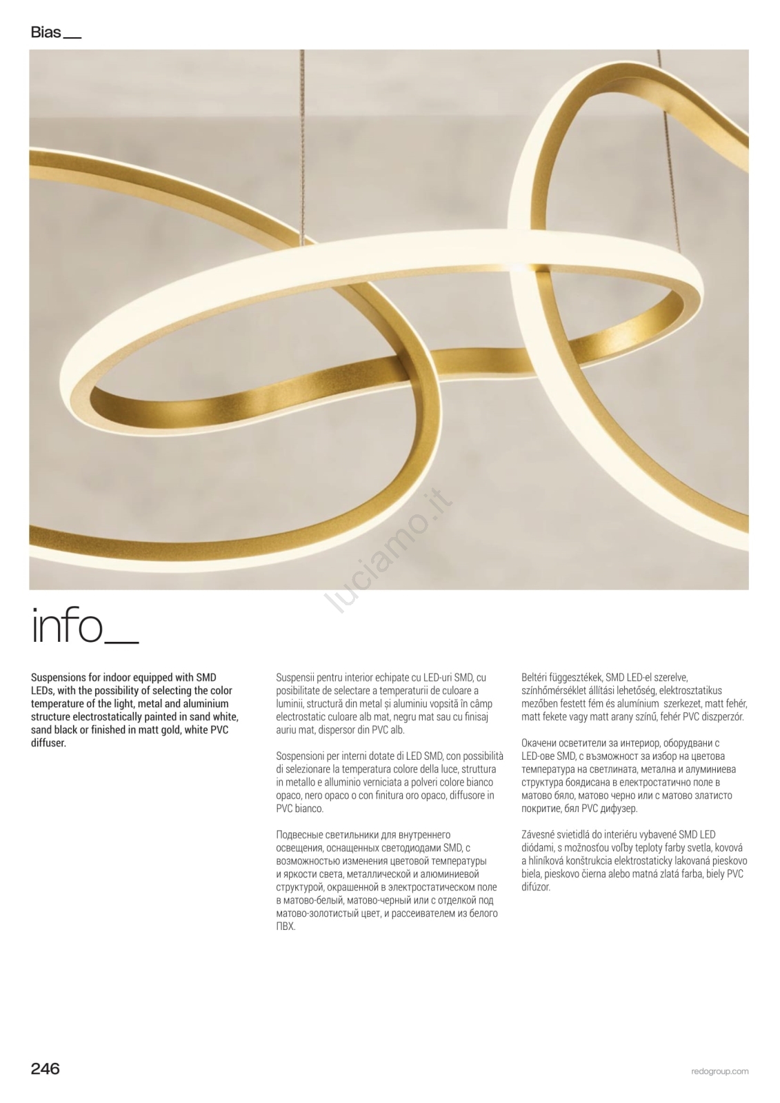 • Redo 01-3389 - Lampadario dimmerabile a sospensione con cavo BIAS LED/90W/230V 3000/4500/6500K CRI 90 oro