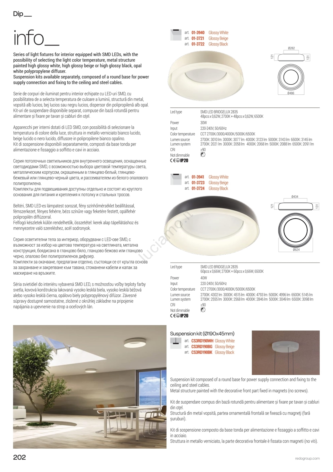 • Redo 01-3941 - Plafoniera a LED DIP/40W/230V 2700/3000/4000/5000/6500K CRI 90 Ø 62,4 cm bianca