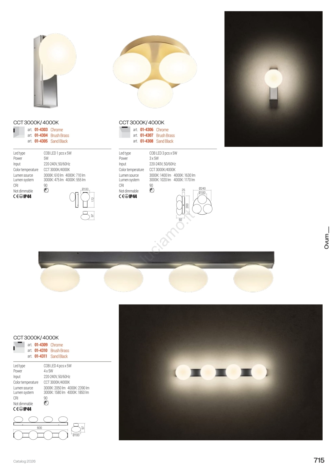 • Redo 01-4307 - Plafoniera LED per bagno OVUM 3x LED da 5W, 230V, 3000/4000K, CRI 90, Ø 24 cm, IP44, bianco/ottone