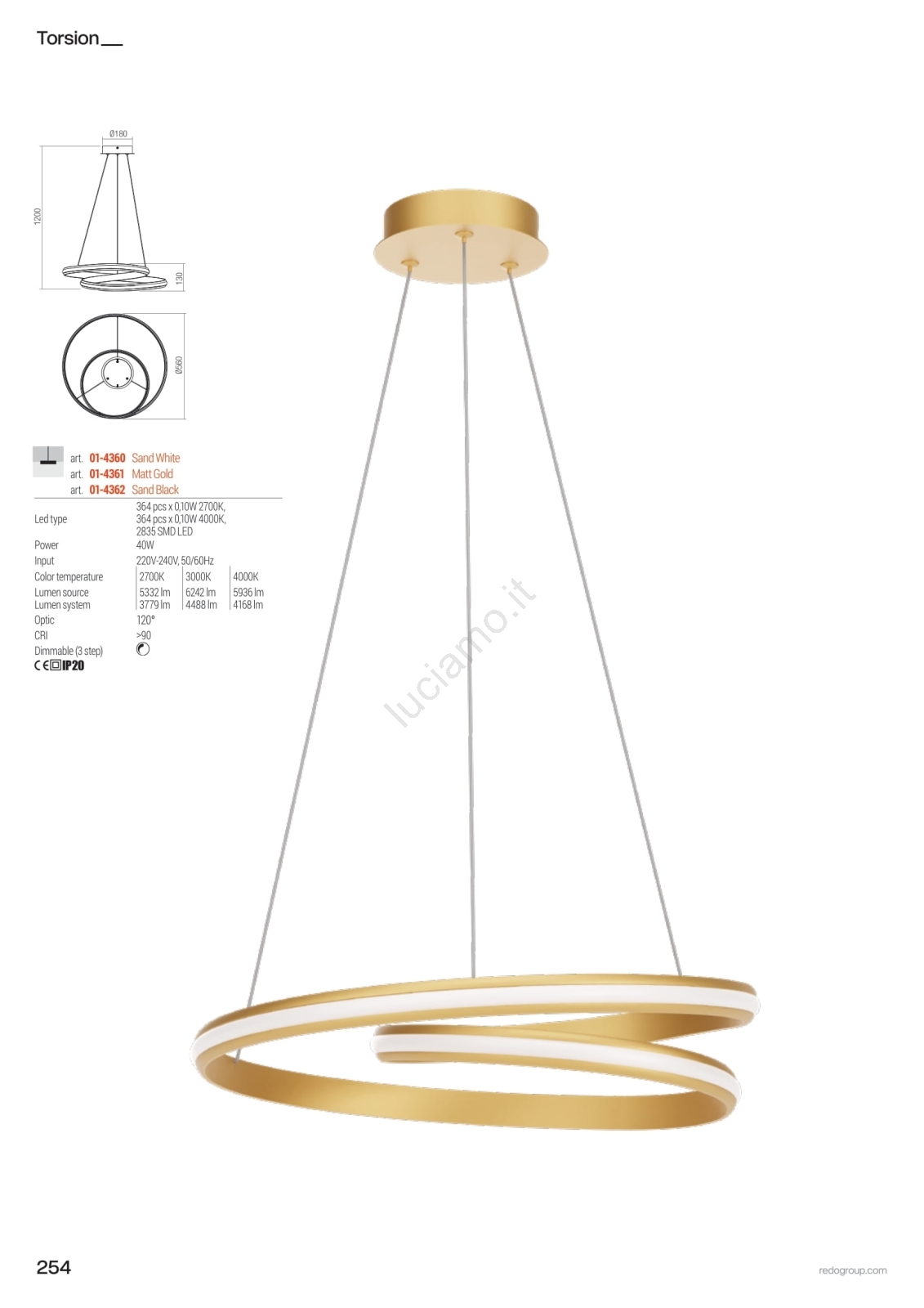 • Redo 01-4361 - Lampadario LED dimmerabile a sospensione con cavo TORSION LED/40W/230V 2700/3000/4000K CRI 90 Ø 56 cm oro