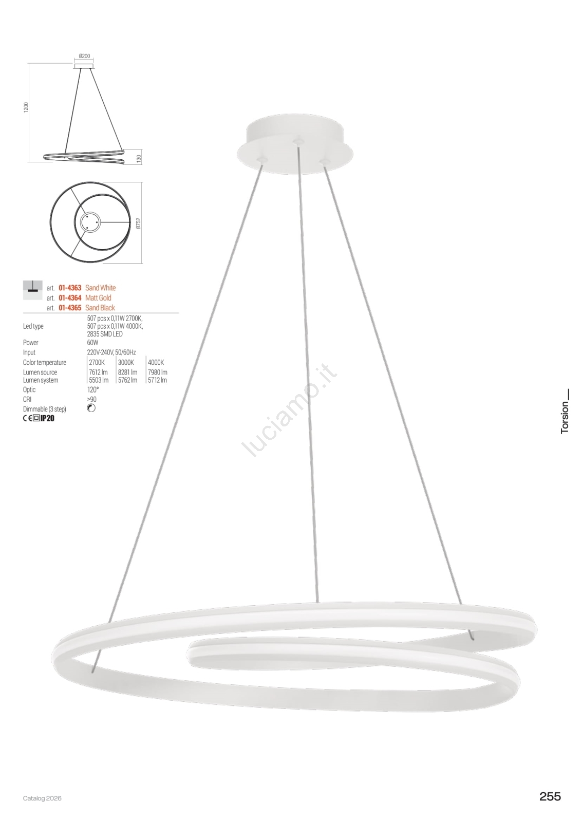 • Redo 01-4363 - Lampada a sospensione LED dimmerabile su cavo TORSION LED/60W/230V 2700/3000/4000K CRI 90 Ø 75,2 cm bianca
