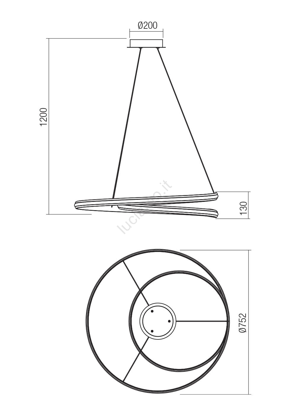• Redo 01-4365 - Lampada a sospensione dimmerabile su cavo TORSION LED/60W/230V 2700/3000/4000K CRI 90 Ø 75,2 cm nero