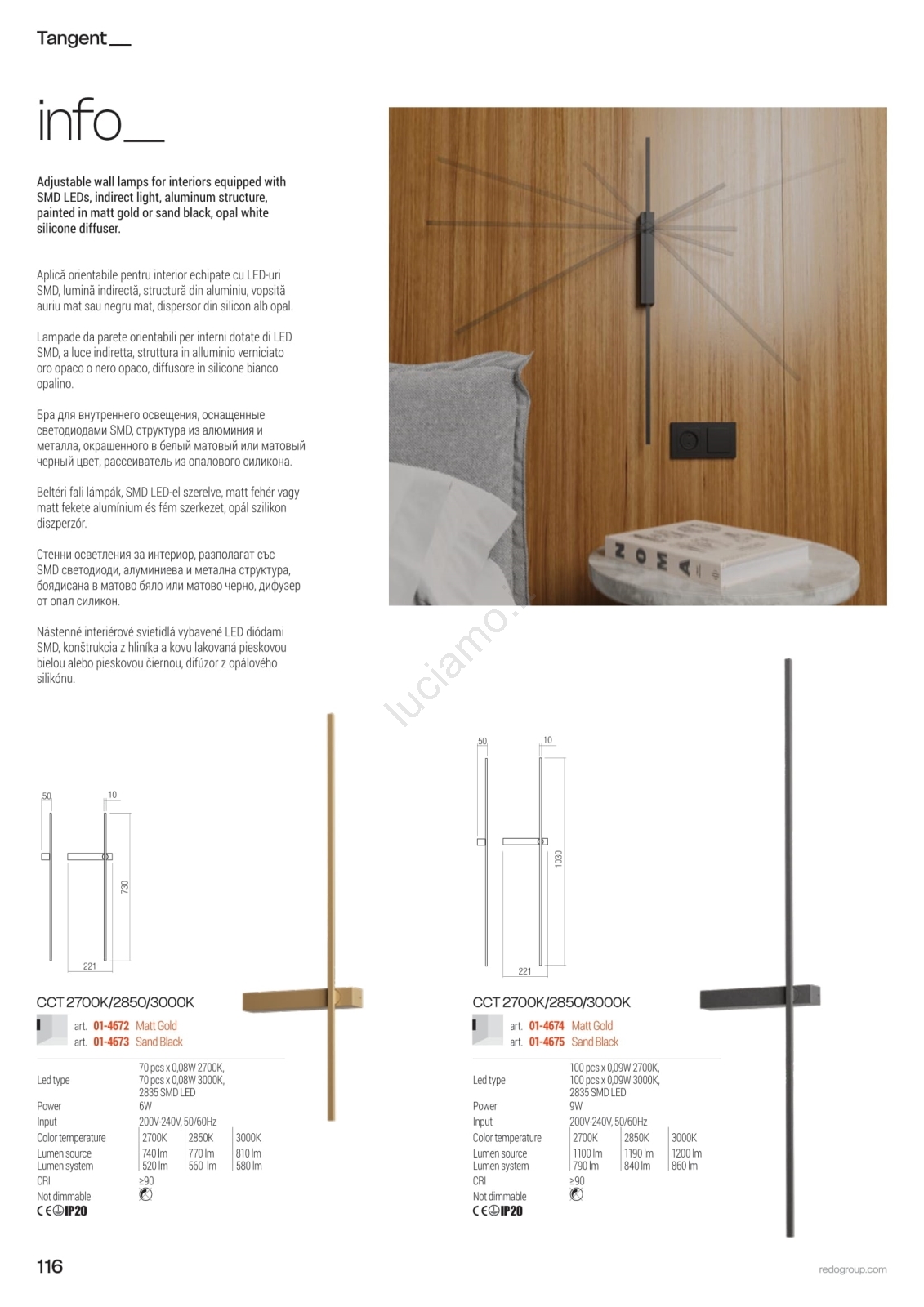 • Redo 01-4674 - Applique da parete LED TANGENT LED/9W/230V 2700/2850/3000K 73 cm CRI 90 dorata