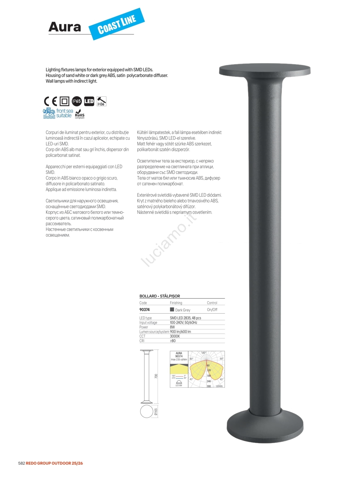 Redo 90371 - Applique da esterno AURA LED/8W/230V 3000K IP65 antracite