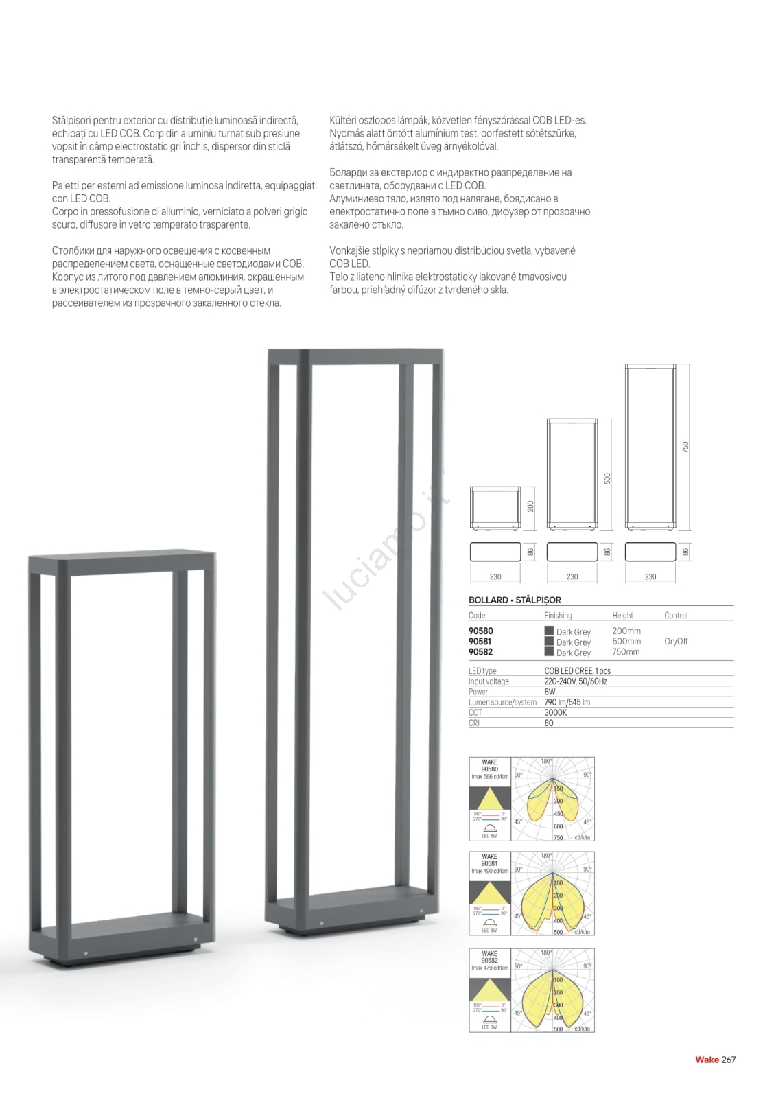Redo 90581 - Lampada da esterno LED WAKE, 8W, 230V, 3000K, 50 cm, IP65, antracite