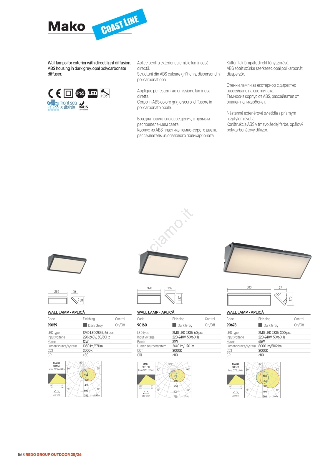 Redo 90678 - Applique da esterno MAKO LED/65W/230V 3000K IP65 antracite