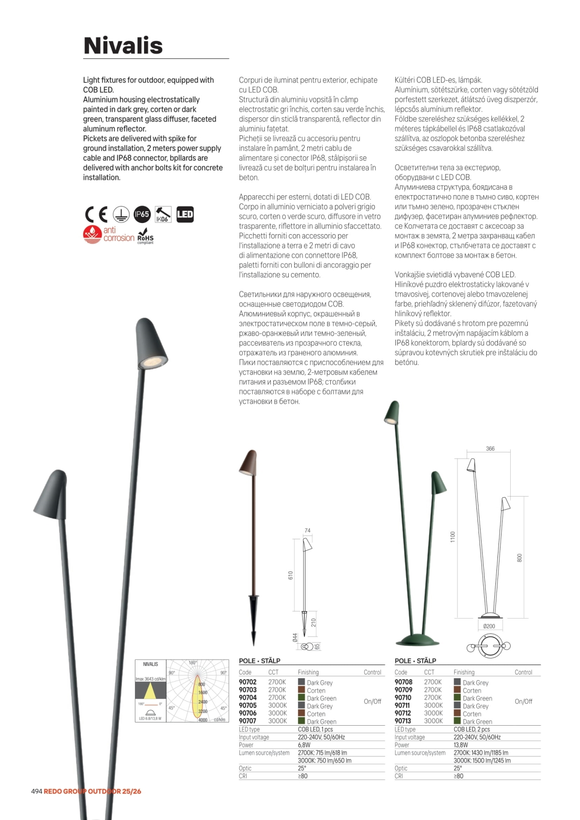 • Redo 90711 - Lampada LED da esterno NIVALIS, 2x LED, 6,9 W, 230 V, 3000 K, 110 cm, IP65, antracite