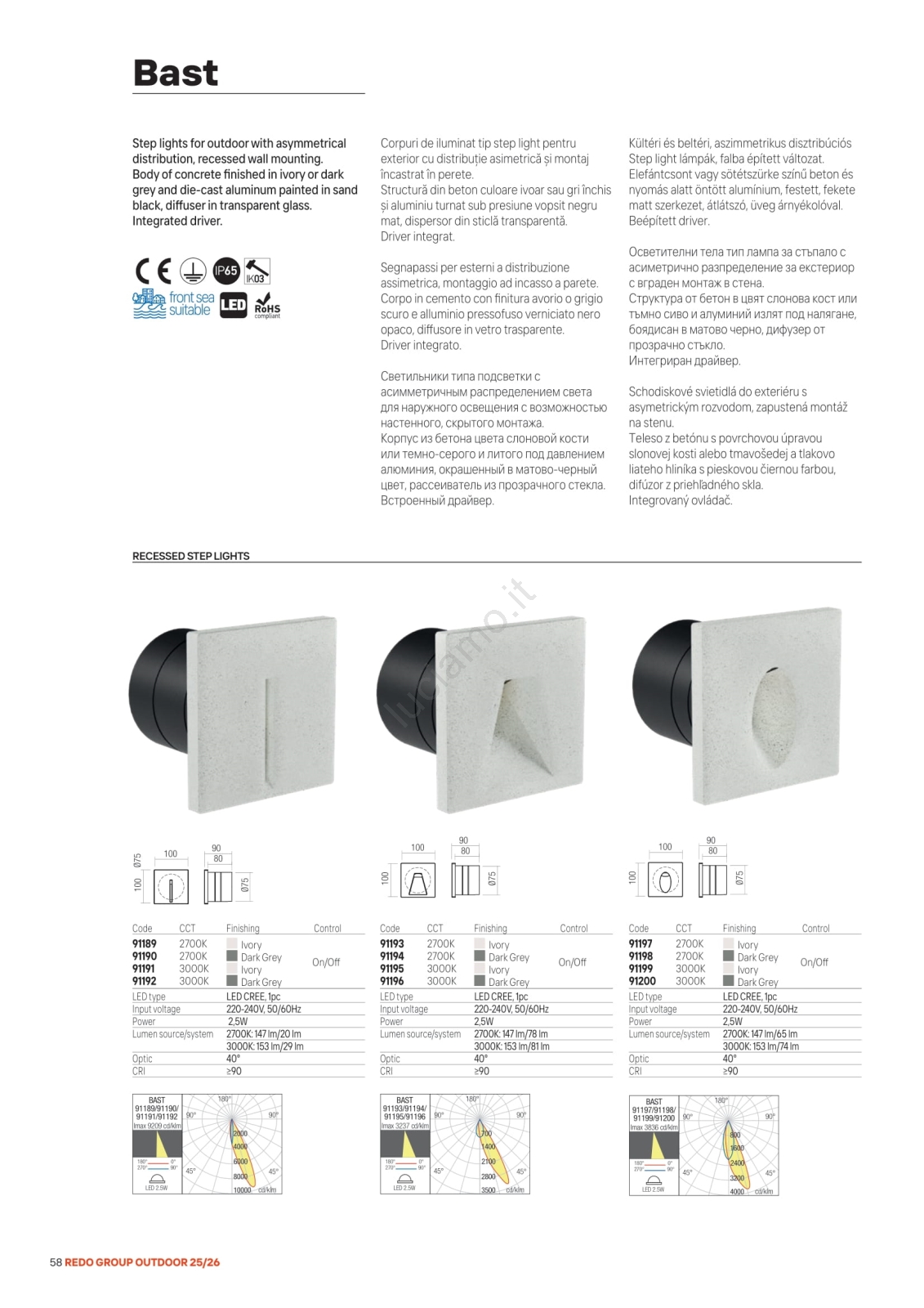 • Redo 91195 - Lampada orientativa LED da esterno BAST LED/2,5W/230V 3000K CRI 90 IP65 grigio