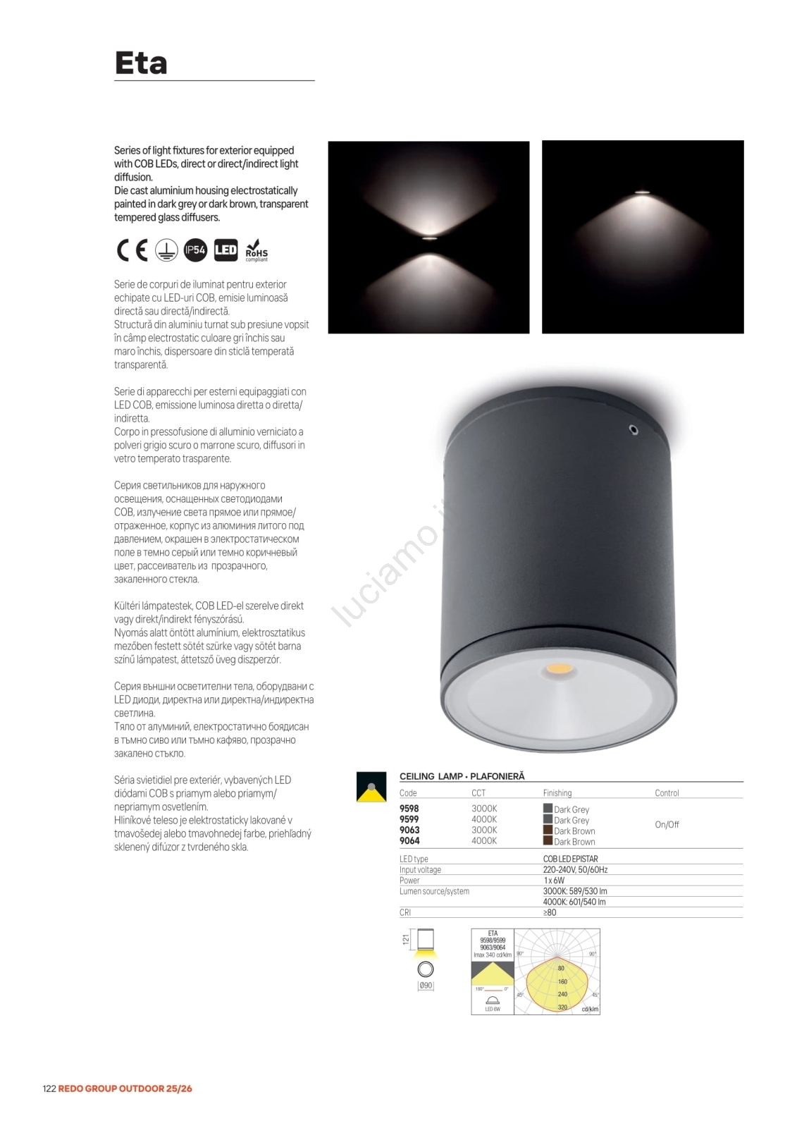 • Redo 9596 - Applique da esterno LED ETA 6W/230V 3000K IP54, marrone