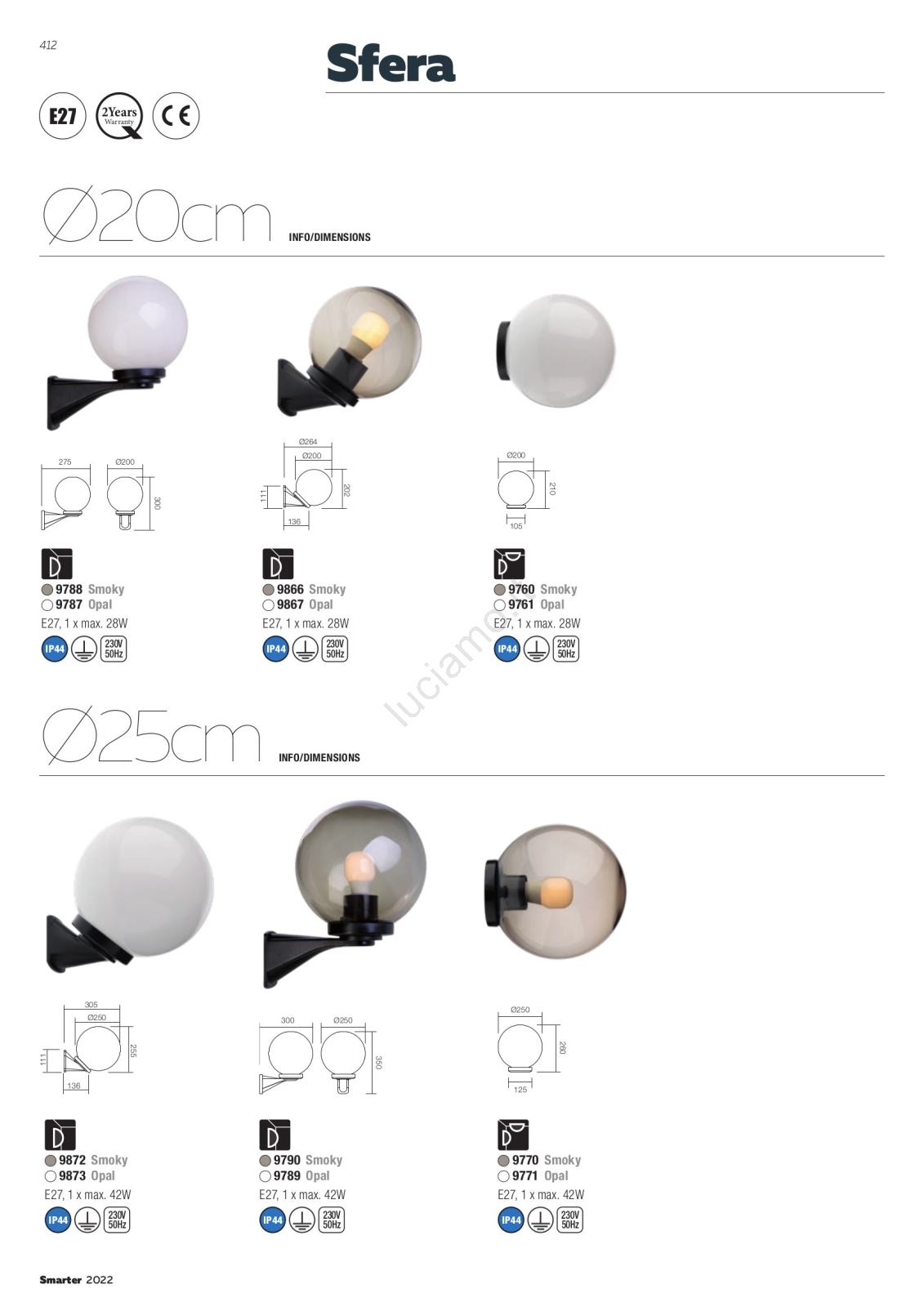 Redo 9770 - Paralume di ricambio per lampada da esterno SFERA diam. 25 cm IP44 marrone