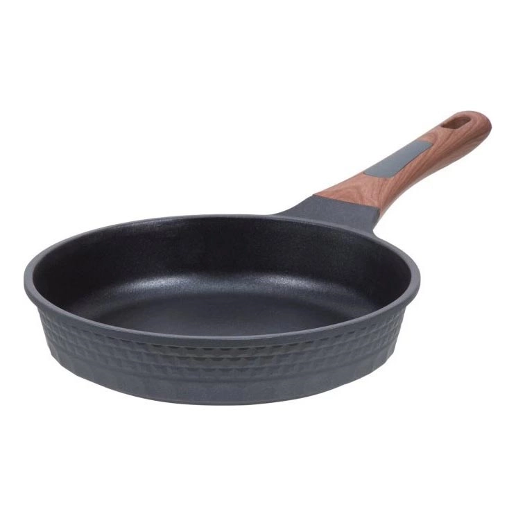 • Il manico ergonomico con finitura Soft-Touch e decoro effetto legno garantisce una presa confortevole e sicura durante l'uso, inoltre la padella ha un aspetto elegante.