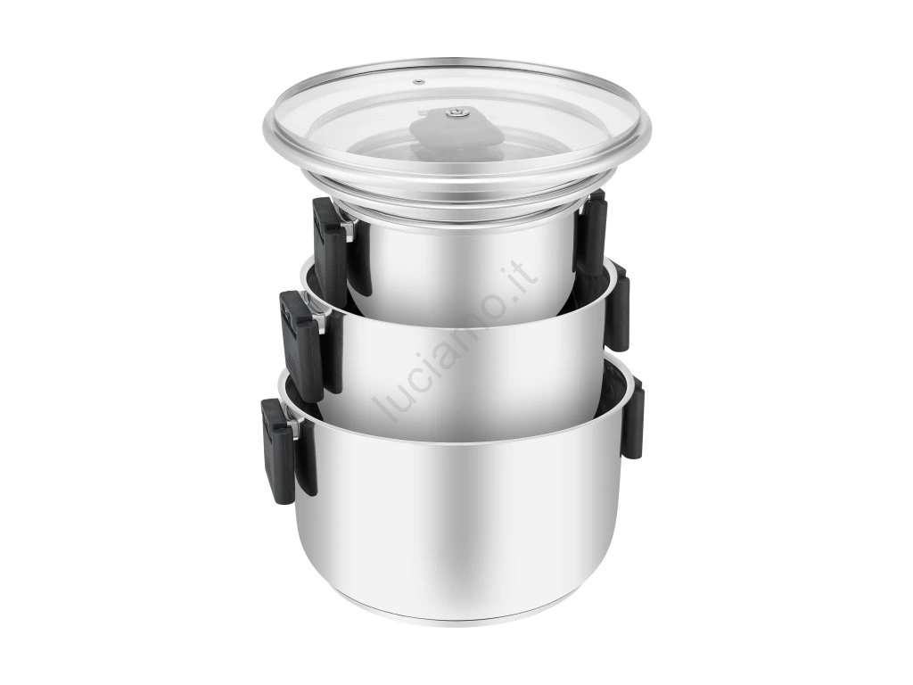 • Le pentole sono realizzate in acciaio inossidabile 18/10 di prima qualità e ad alta resistenza.