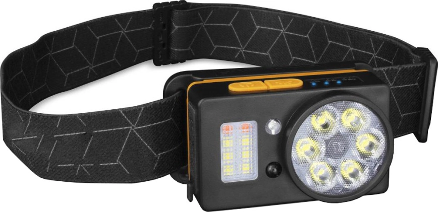 • Torcia frontale ricaricabile a LED con sensore e funzione powerbank LED/1200 mAh IP44 nera