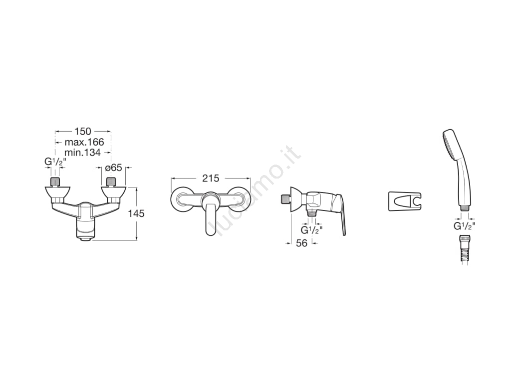 • La confezione include: miscelatore per doccia, doccetta a mano, tubo flessibile da 1,5 m, supporto a parete.