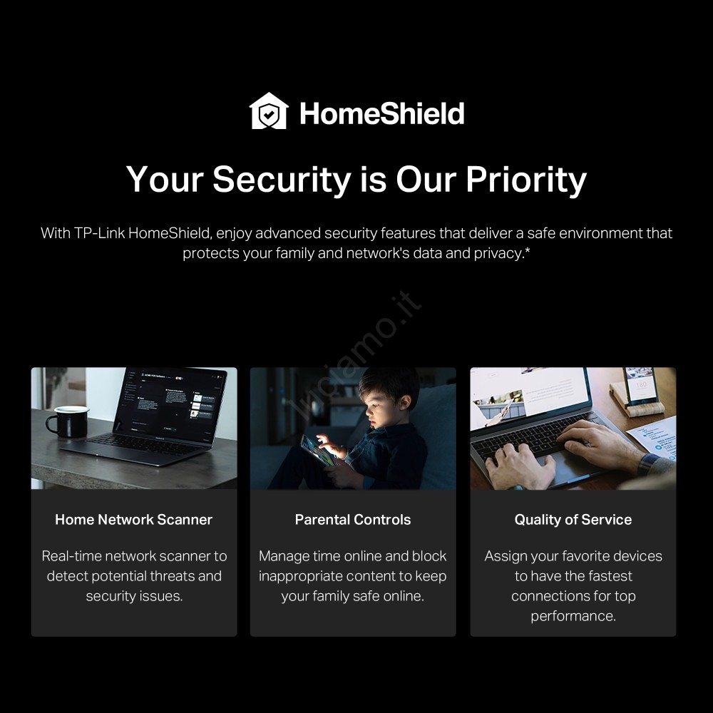 • TP-Link HomeShield - La sicurezza avanzata protegge dalle più recenti minacce informatiche.