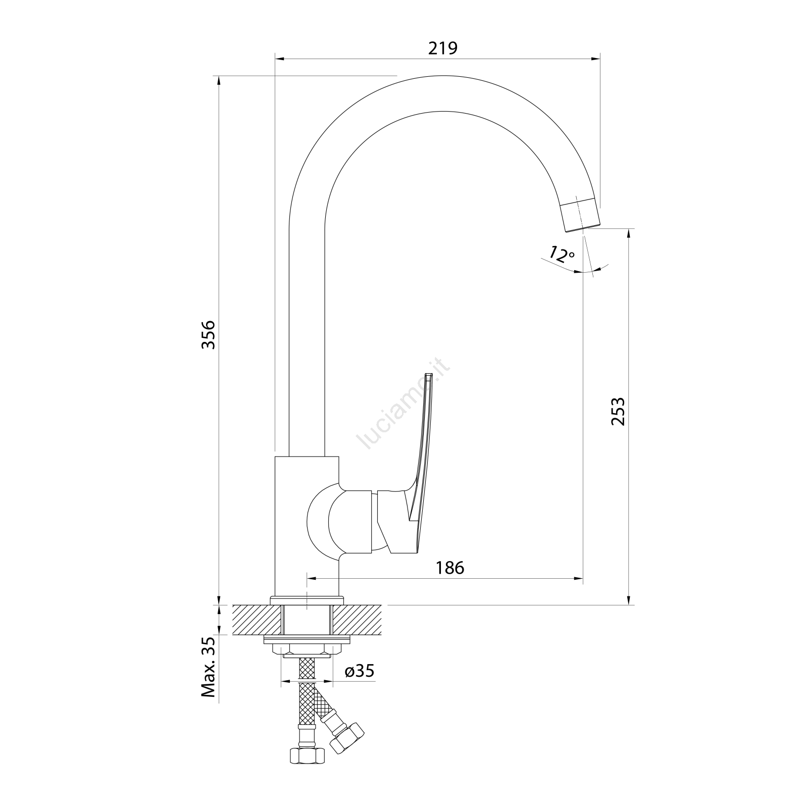 • Il miscelatore è dotato di becco girevole e maniglia a leva.