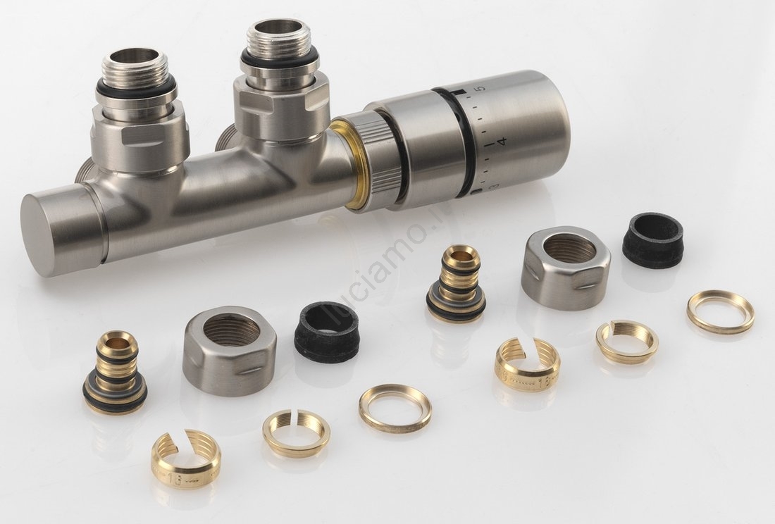 Sapho - Kit termostatico di collegamento per attacco centrale TWIN, acciaio inossidabile satinato
