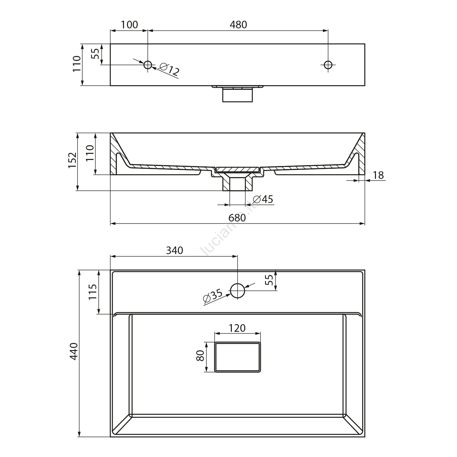 • Ha dimensioni 680x440 mm con altezza 110 mm.