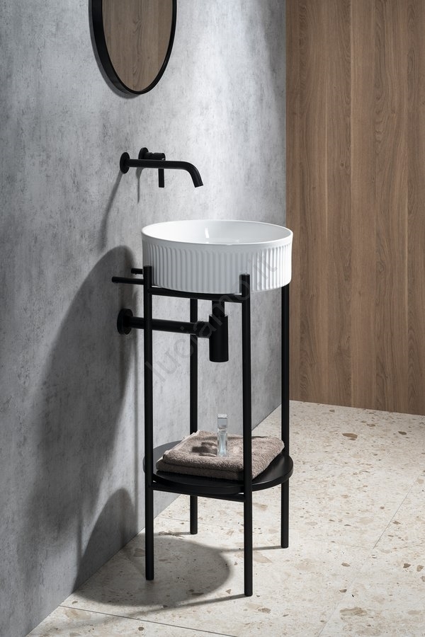• Lavabo da appoggio in ceramica dal diametro di 370 mm.