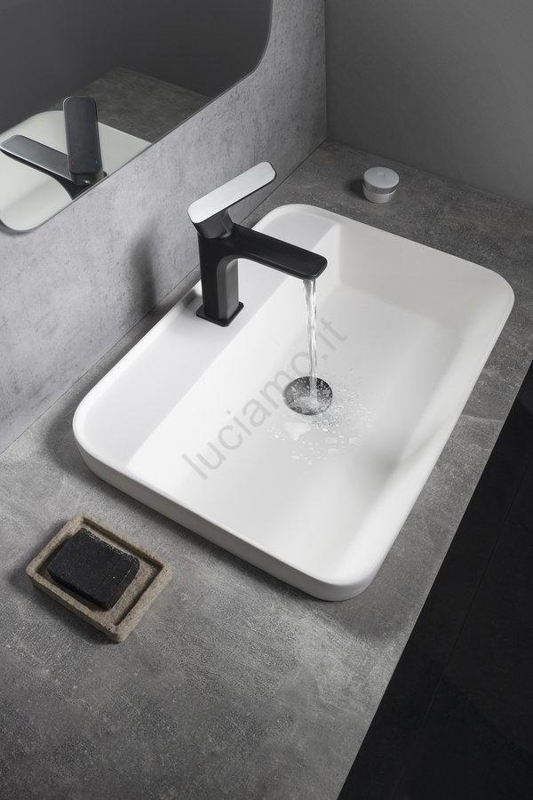 • Il lavabo è da incasso e realizzato in Solid Surface.