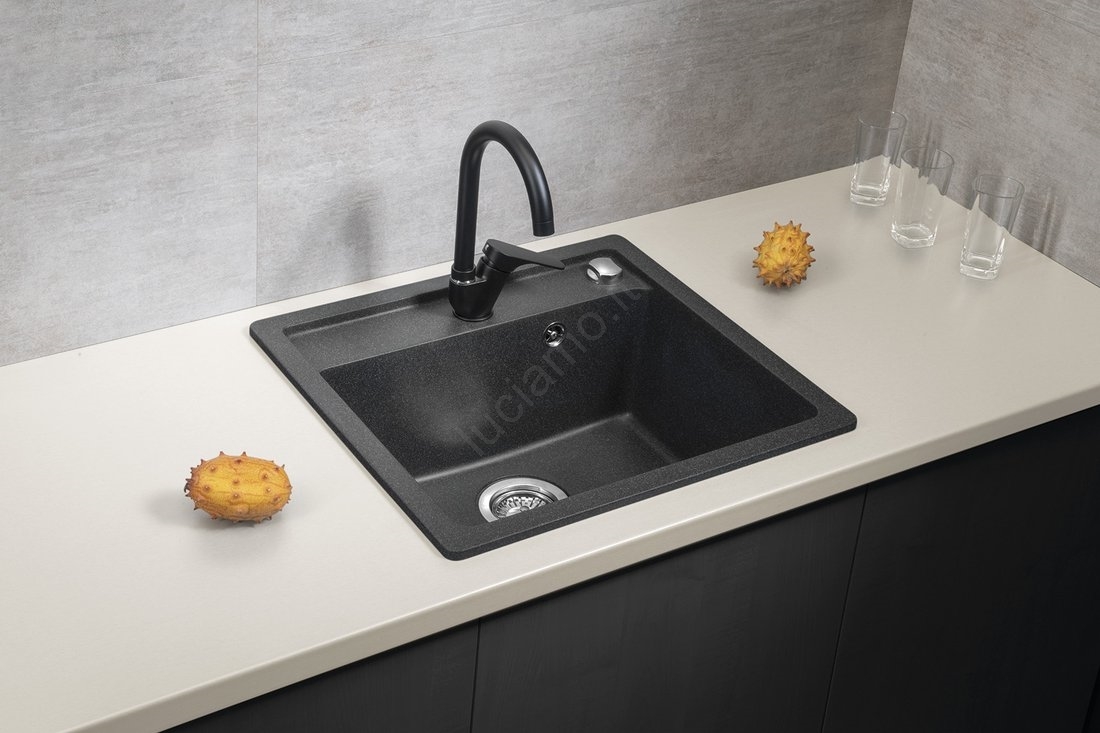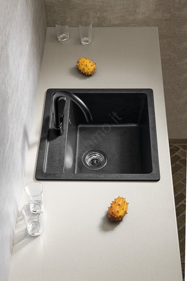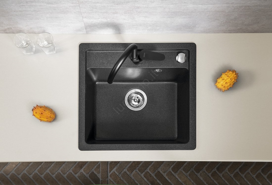 Sapho - Lavello da cucina in granito 53 x 50 cm, nero