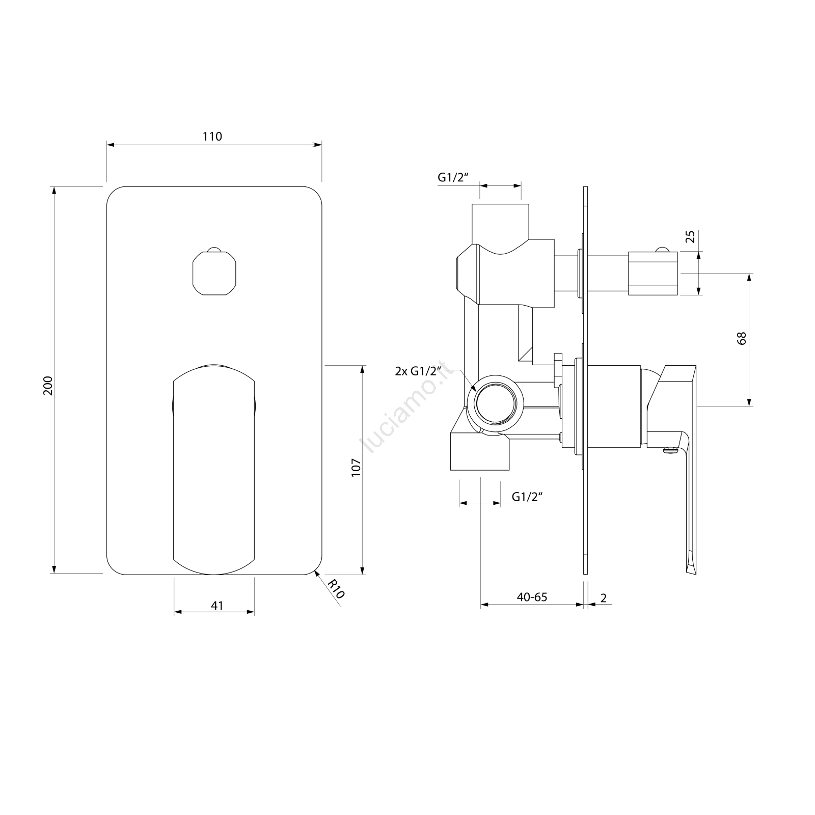 • Il miscelatore è realizzato in ottone e dispone di due uscite.
