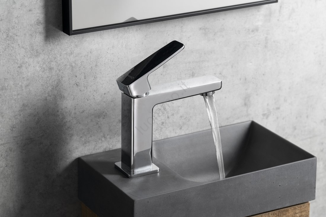 • Questo miscelatore per lavabo si distingue per il design moderno e le finiture di alta qualità.