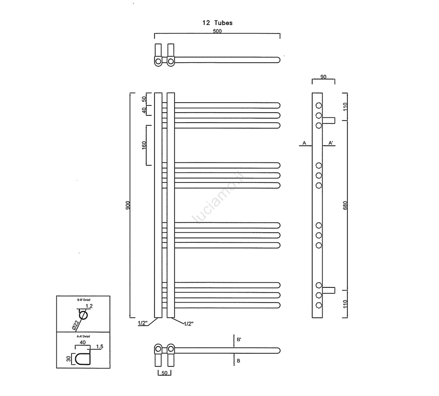Sapho - Scaldasalviette da bagno DORLION 300W/230V 50x90 cm nero opaco