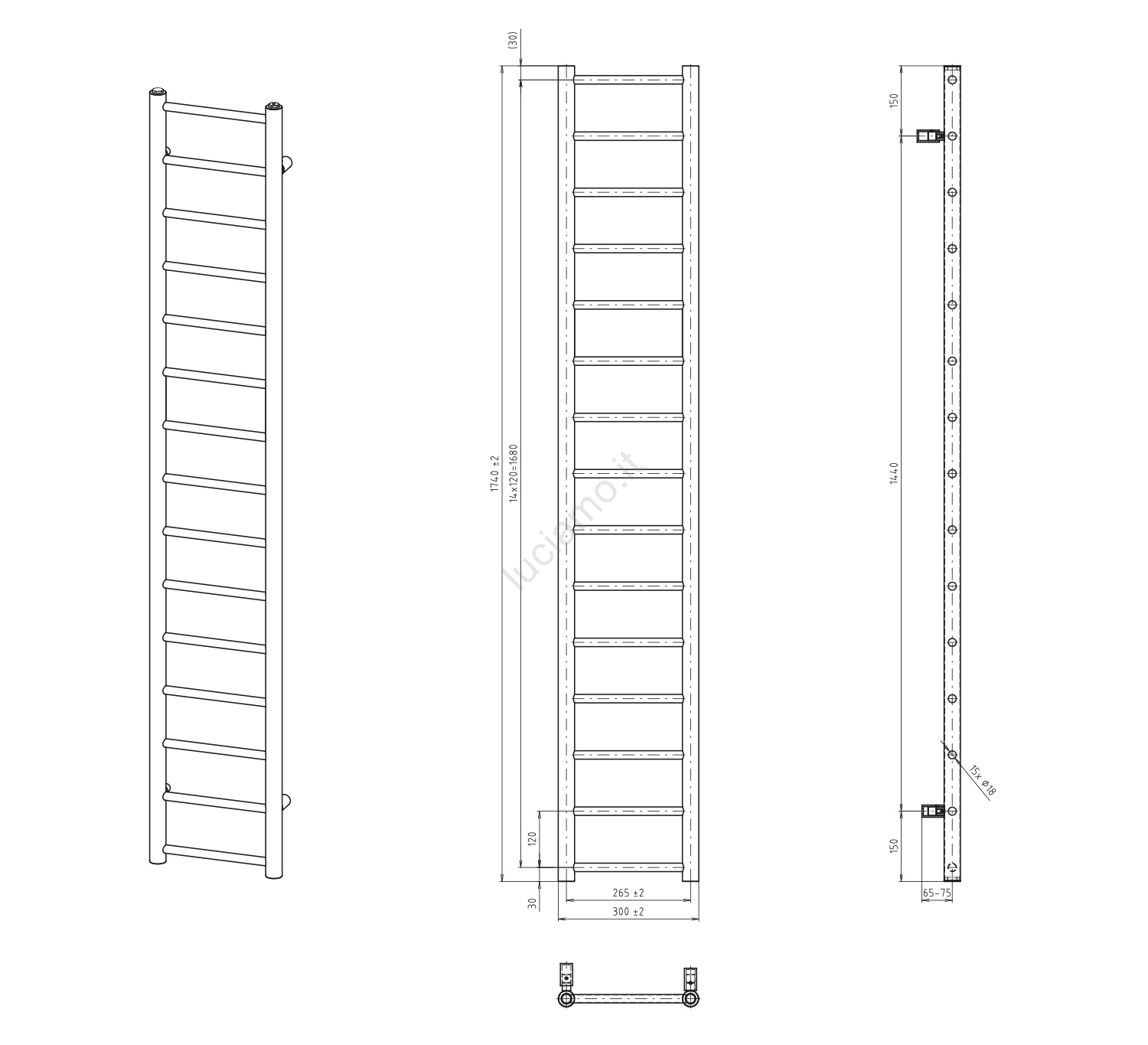 Sapho - Scaldasalviette DINA 335W 30x174 cm nero opaco
