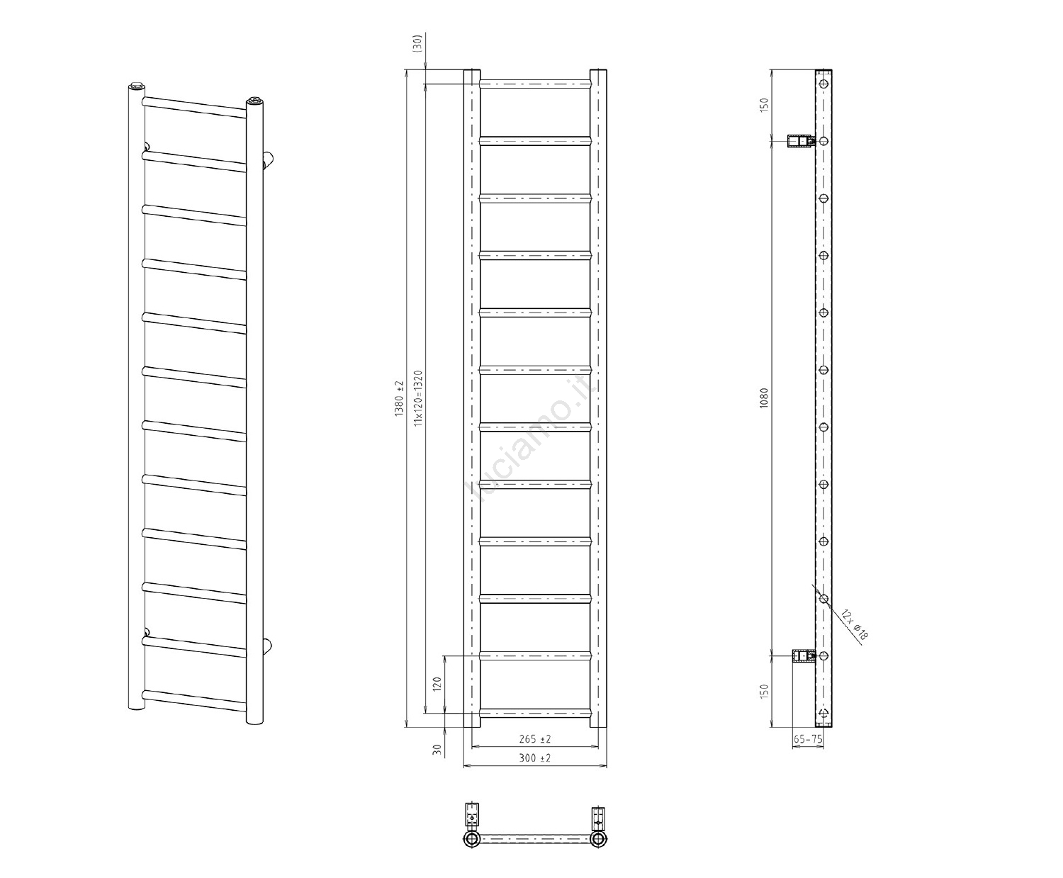 Sapho - Scaldasalviette per bagno DINA 278W 30x138 cm nero opaco