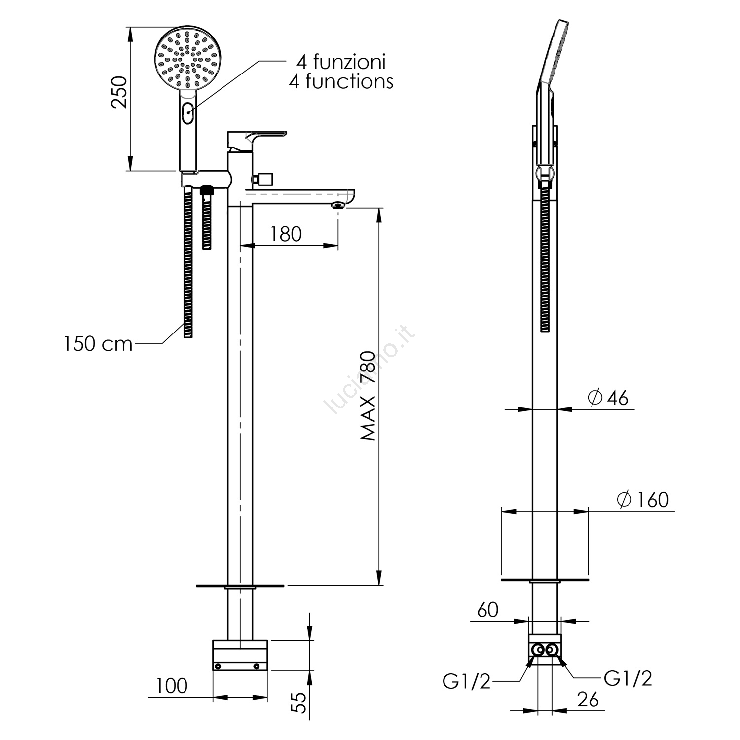 • Questo miscelatore per vasca è pensato per l'installazione a pavimento.