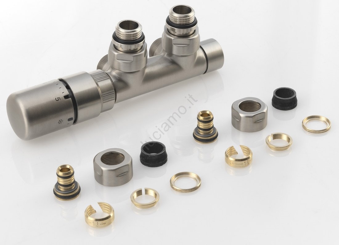 Sapho - Kit termostatico di collegamento per attacco centrale TWIN sinistro/inox opaco