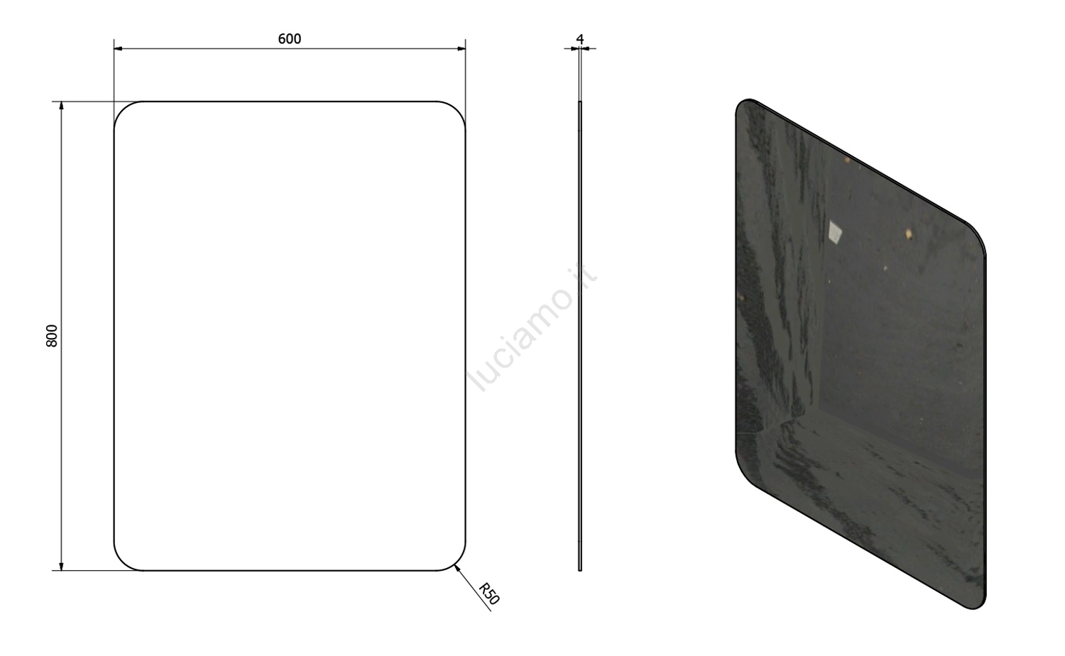 • Lo specchio presenta bordi molati e angoli arrotondati.