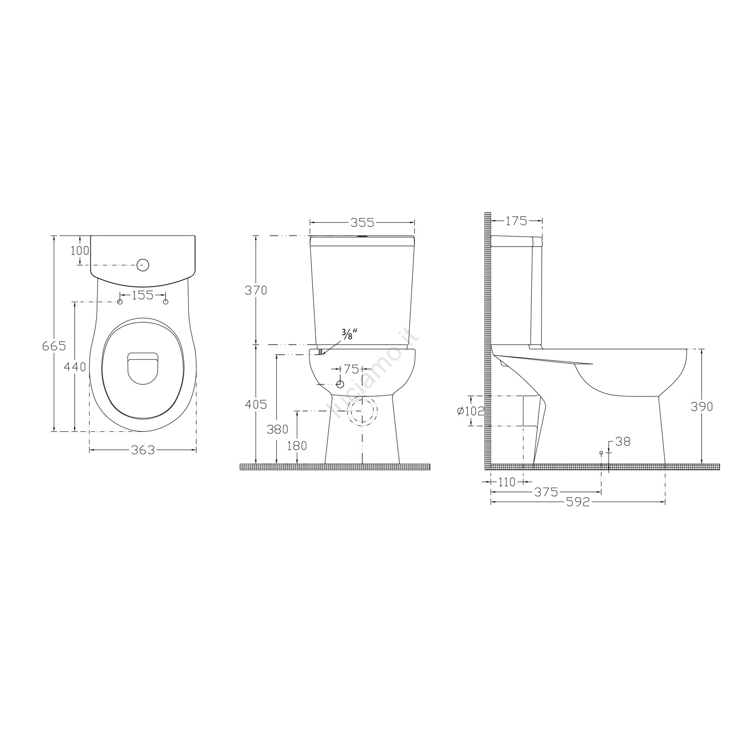 Sapho - WC monoblocco, scarico posteriore, ceramica/bianco
