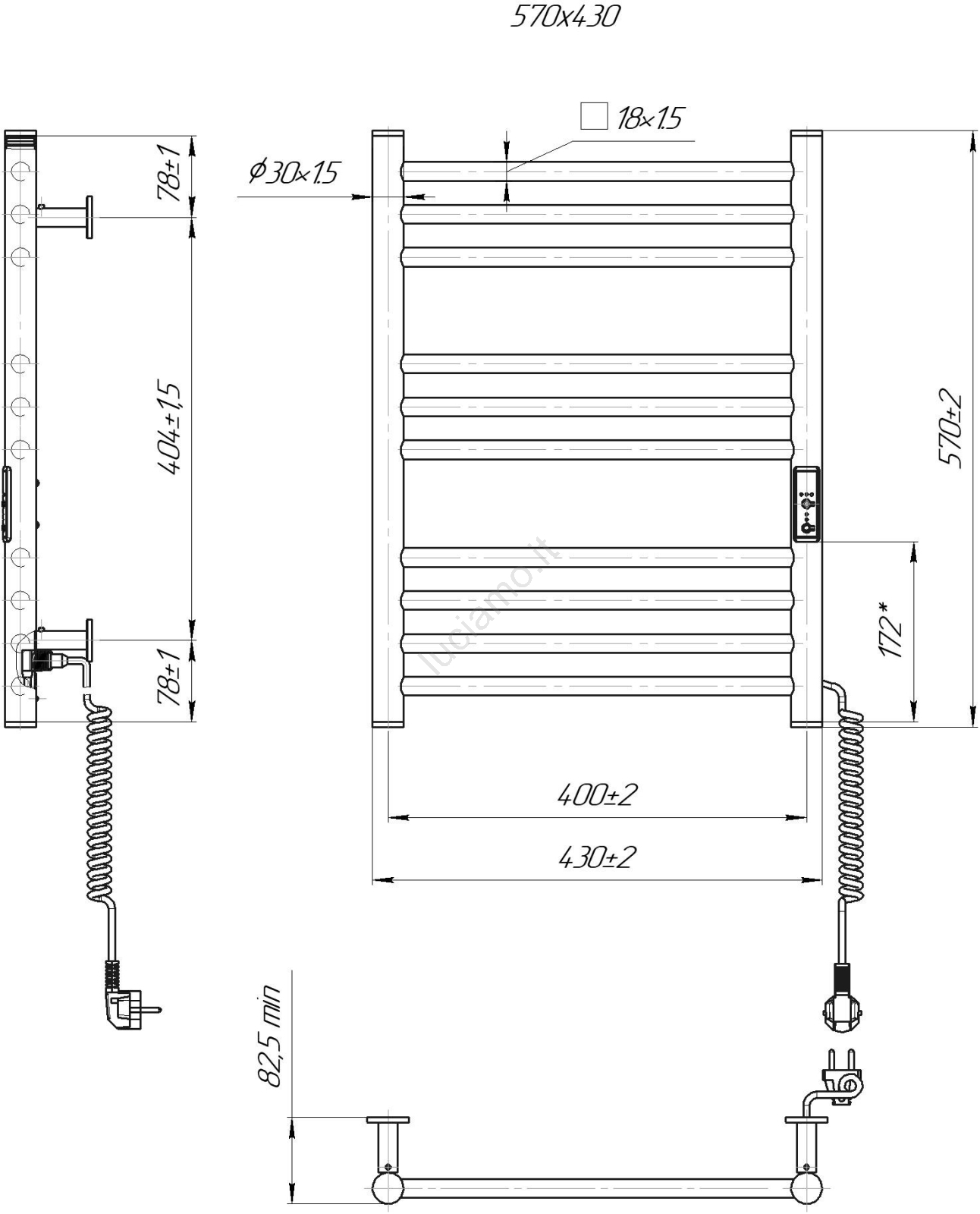 Scaldasalviette a scala da bagno HF GREENWICH 100W/230V 57x43 cm, nero, attacco destro, a tubi rotondi