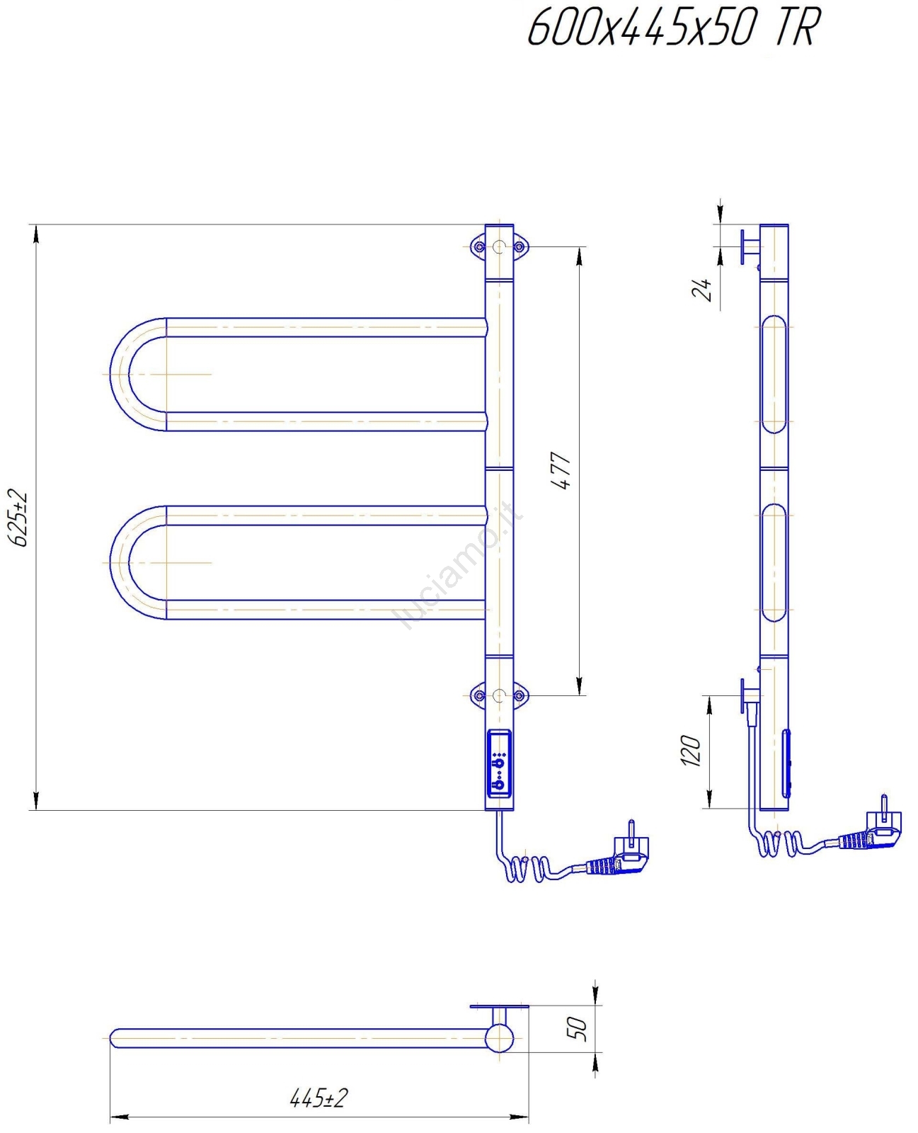 Scaldasalviette elettrico girevole per asciugamani TRISTAR 75W/230V 62,5x44,5 cm IP44 acciaio inox/cromo lucido