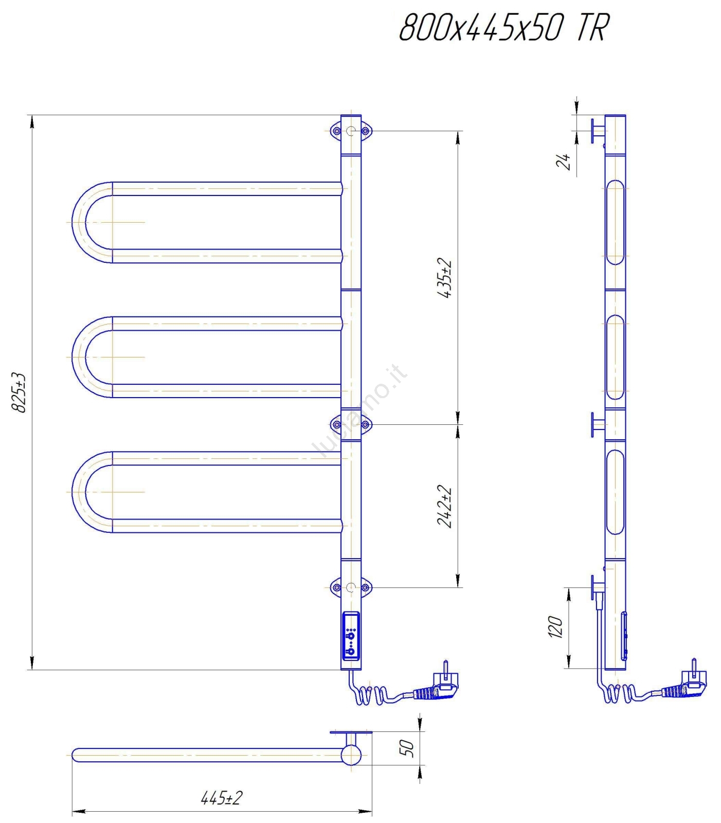 Scaldasalviette elettrico girevole TRISTAR 80W/230V 80x44,5 cm IP44 acciaio inox/cromo lucido