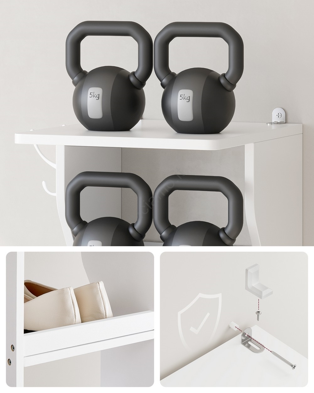 • Ogni ripiano supporta fino a 10 kg e il kit anti-ribaltamento ne aumenta la stabilità.