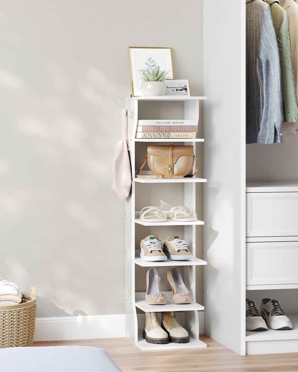 • Grazie alla sua forma slanciata, questa scarpiera a 7 ripiani occupa poco spazio a terra offrendo comunque ampio spazio di conservazione.
