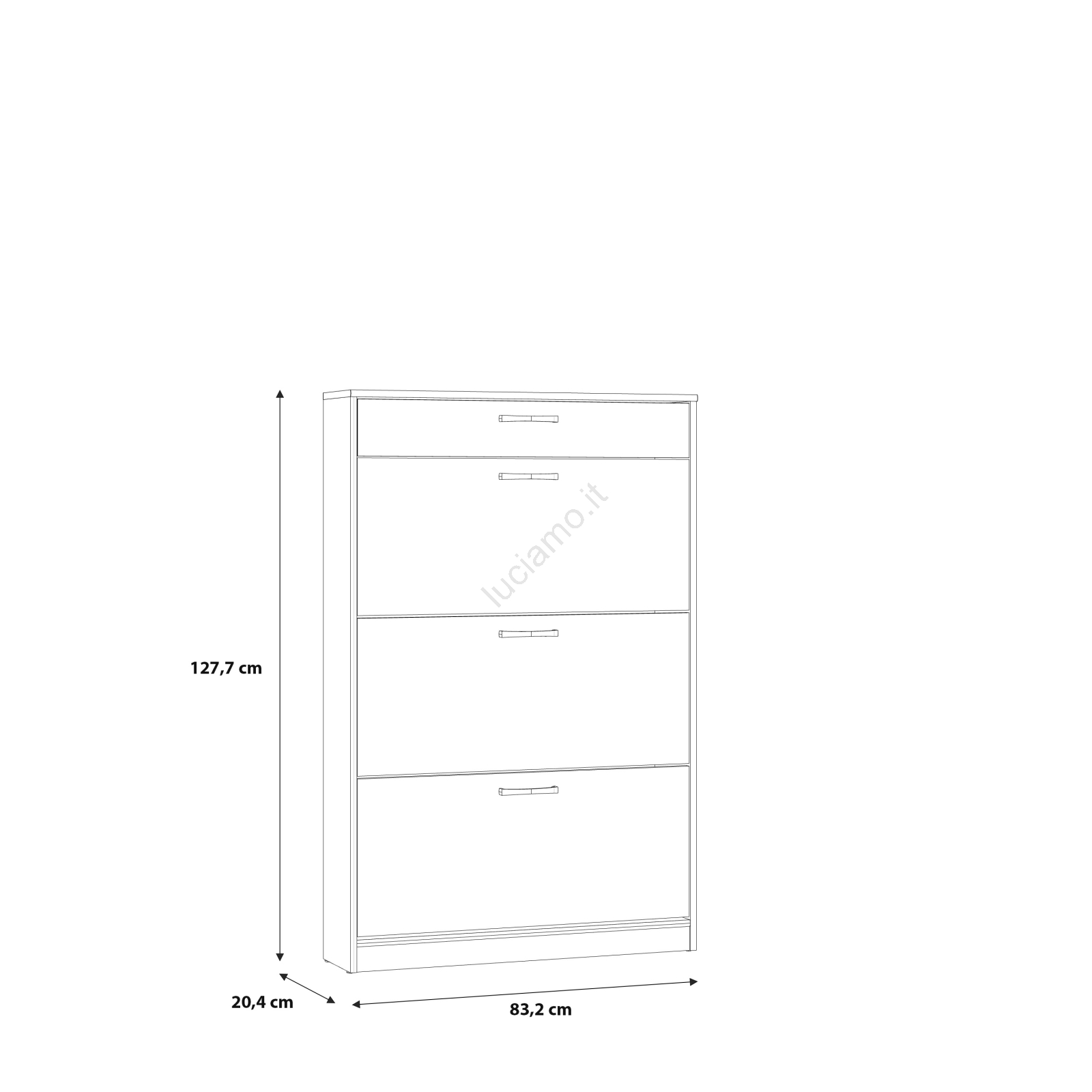 • Grazie al profilo slanciato, questa scarpiera a 4 livelli occupa poco spazio a terra offrendo comunque ampio spazio di stoccaggio.