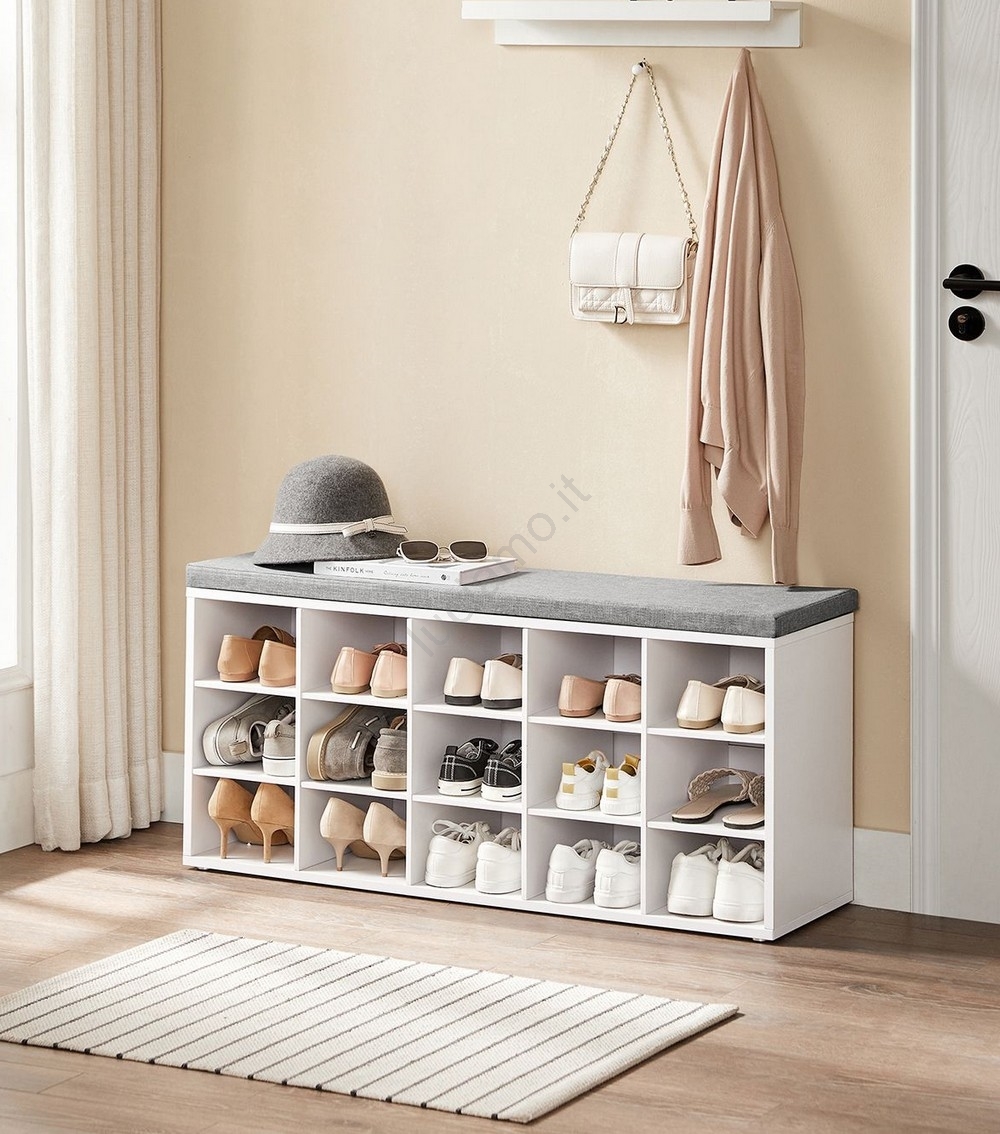 • Cuscino imbottito consente di sedersi comodamente per indossare o togliere le scarpe.