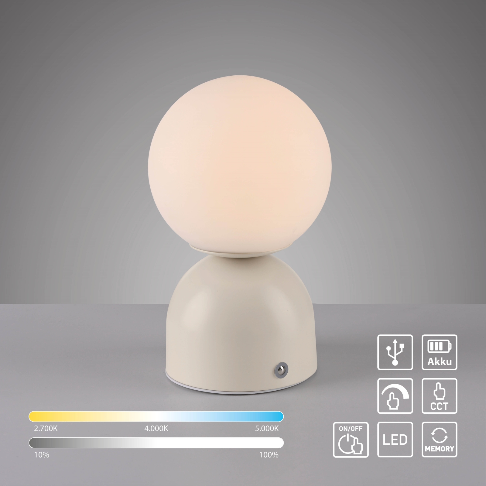 • Schöner Wohnen 19218-39 - Lampada da tavolo ricaricabile LED dimmerabile a sfioramento RUDI LED/1,2W/5V 3000-6000K 1200 mAh grigio