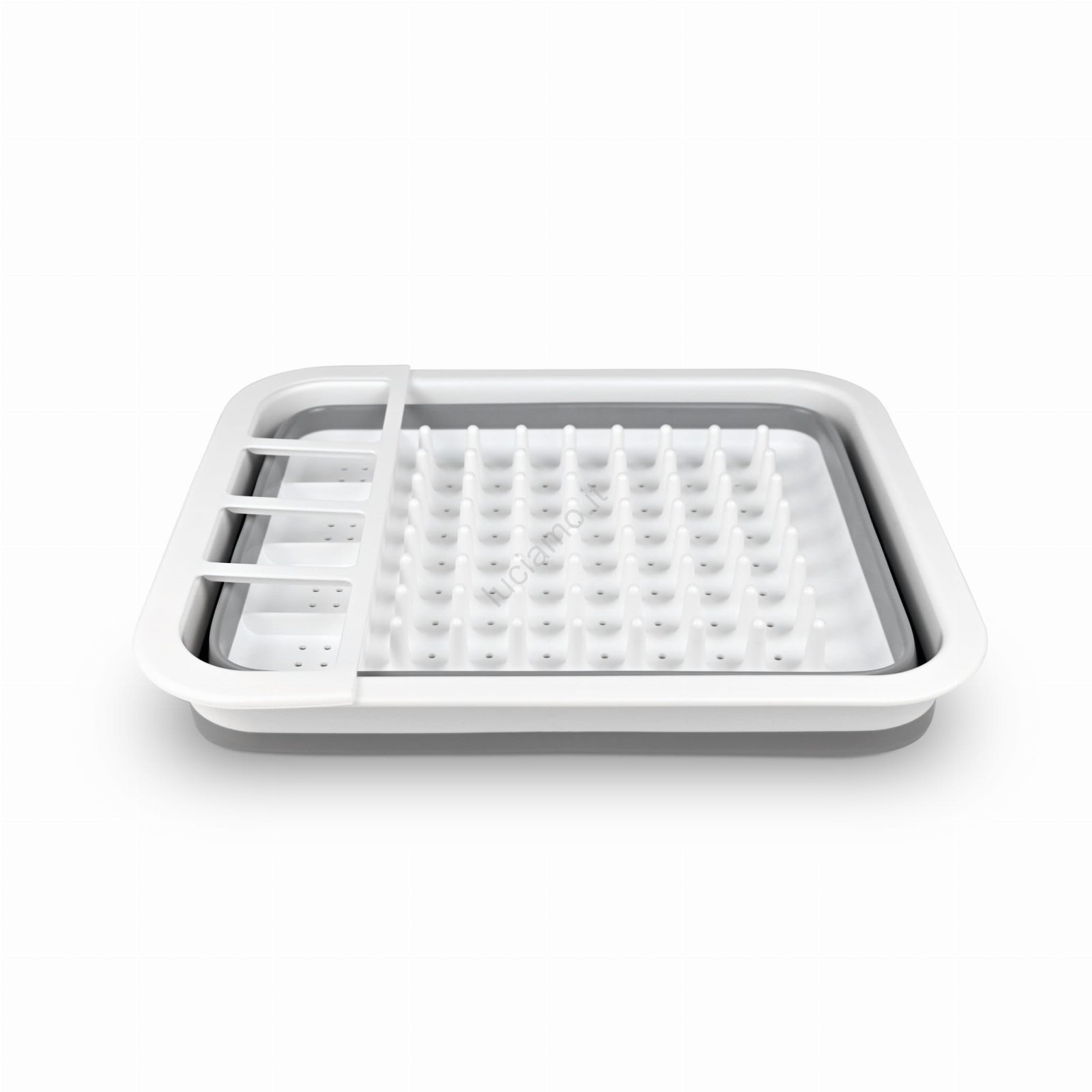 • Realizzato in silicone alimentare abbinato a una cornice rigida — leggero, flessibile ma abbastanza stabile per raccogliere l'acqua che scola dalle stoviglie.