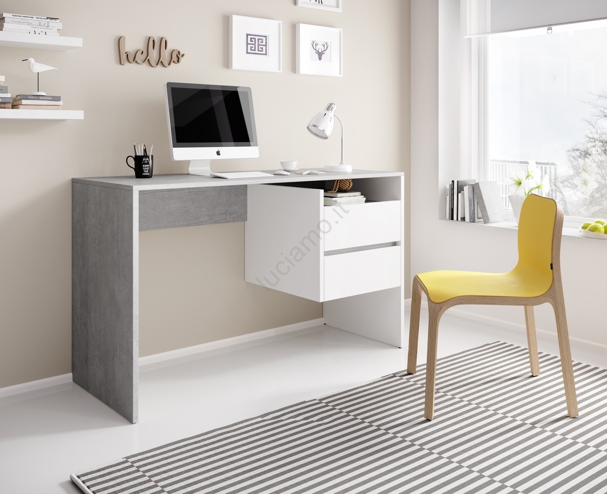 Scrivania con cassetti MARLO grigio cemento/bianco